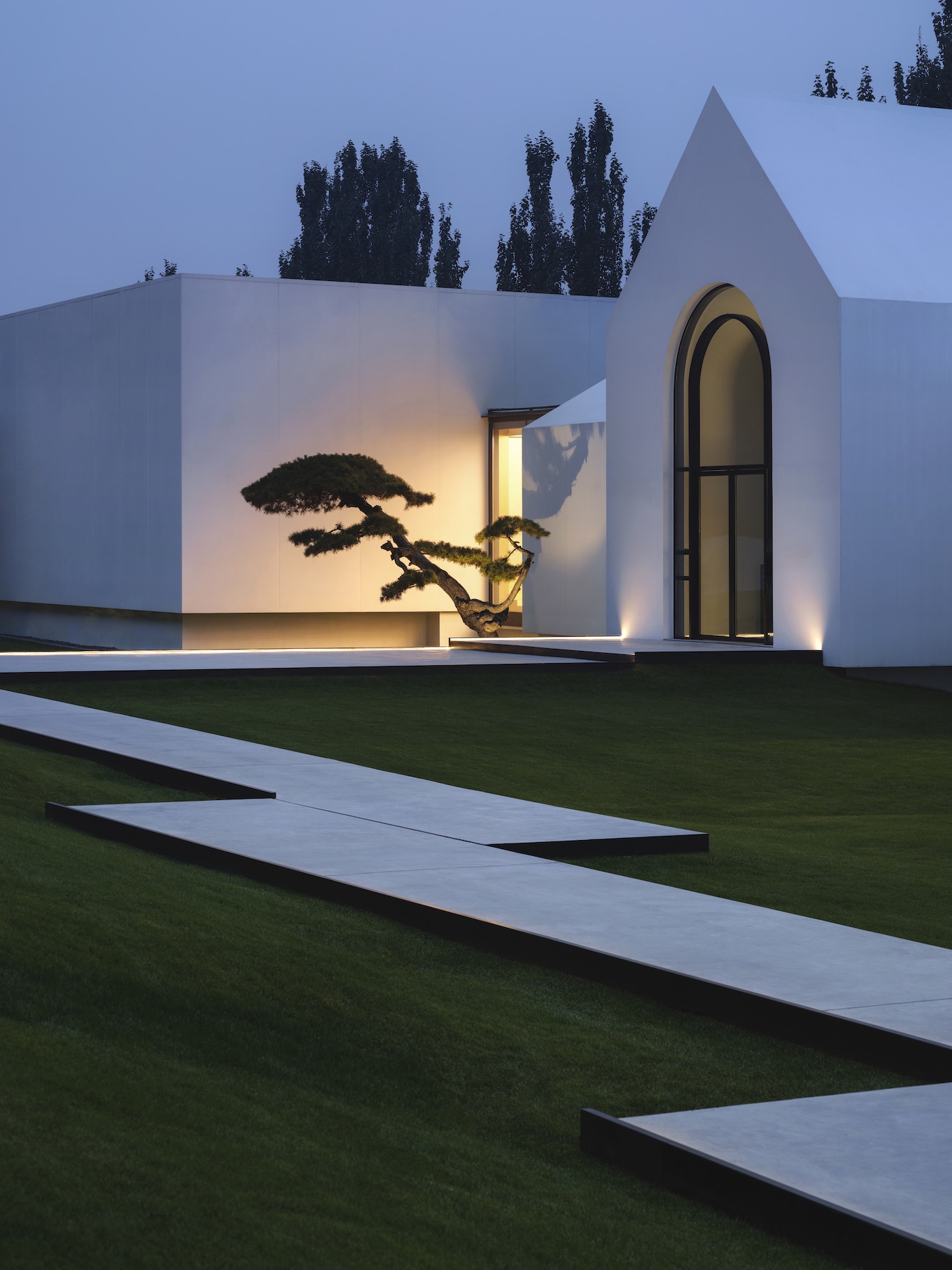 Avec toute la base en forme de long rouleau chinois, les architectes ont réorganisé la relation entre le bâtiment et les cours. C’est pourquoi ils ont dispersé 199 pins à l’intérieur. Avec la galerie d’art, ils ont aussi voulu restaurer des bâtiments classiques. En plaçant des arcades à gauche et à droite, ils ont bien sûr suivi la préférence du propriétaire, mais aussi ils ont mieux marqué le style oriental du musée. Enfin pour l’architecture de la galerie, ils ont supprimé le « symbolisme occidental » pour donner le blanc le plus pur.