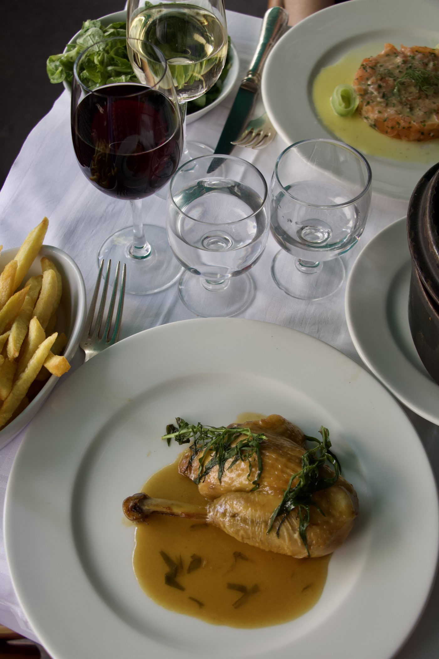 À table, on succombe, en ce mois de septembre encore tiède, aux traditionnels oeufs mayonnaise, à des plats inspirant la fraicheur tels que le tartare de tomates, une salade de lentilles ou encore un savoureux tartare de saumon. Chaque jour, un plat typique vient se greffer à la carte, comme le foie de veau le mercredi ou l’agneau le samedi.