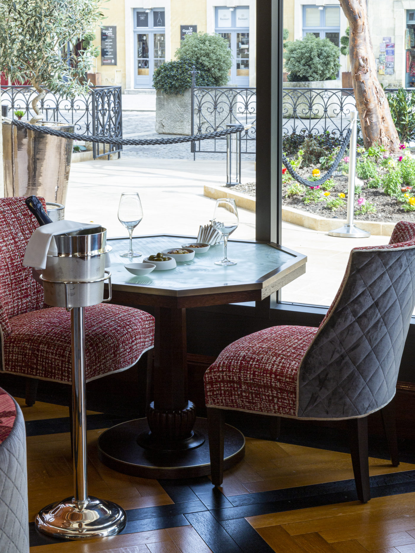 Saint-Émilion et l’hôtel de Pavie, désormais ne font qu’un dans ce décor troglodytique et à travers son œuvre, la famille Perse, semble avoir entrepris, au-delà d’une simple rénovation, un véritable travail de réédification de la cité. Saint-Émilion, le nouvel empire Perse ? Leur royaume s’étale sur plusieurs centaines de mètres de rues pavées, gravitant autour de la place principale – entre deux boutiques de vin ou de spécialités régionales – séparés par la patio central où se situent un bar et une table d’exception.