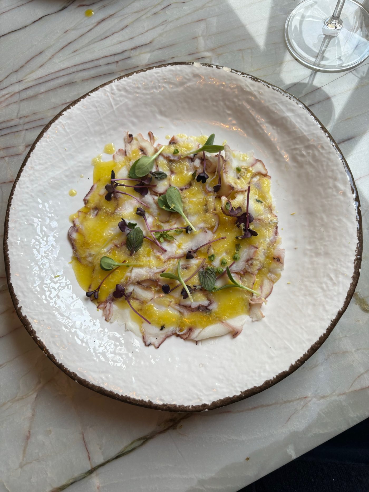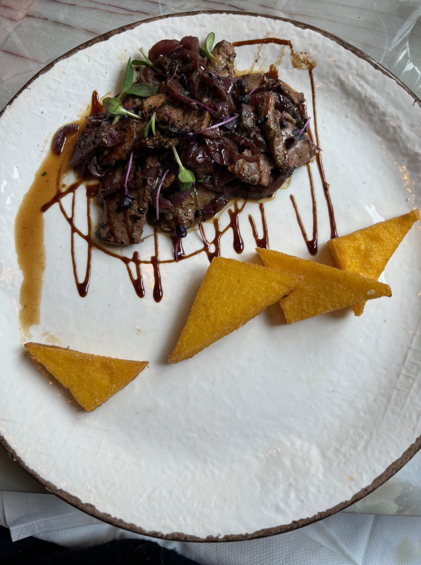 On pense alors, en savourant un vin aux tanins légers de l’Etna, au parcours du chef passé par l’hôtel II Santavenere (Maratea) et le Gritti Palace où il a secondé le chef Daniele Turco. Quand se présente à nous, « le secondi » on fait l’expérience d’un magnifique foie de veau à la Vénitienne, polenta croustillante à la truffe. Au verre, on se délecte d’un superbe vin des Pouilles aux notes de fruits confits. Tout exprime ici l’amour des beaux produits dans un savant mélange d’humilité et de simplicité portant l’essence du terroir transalpin.