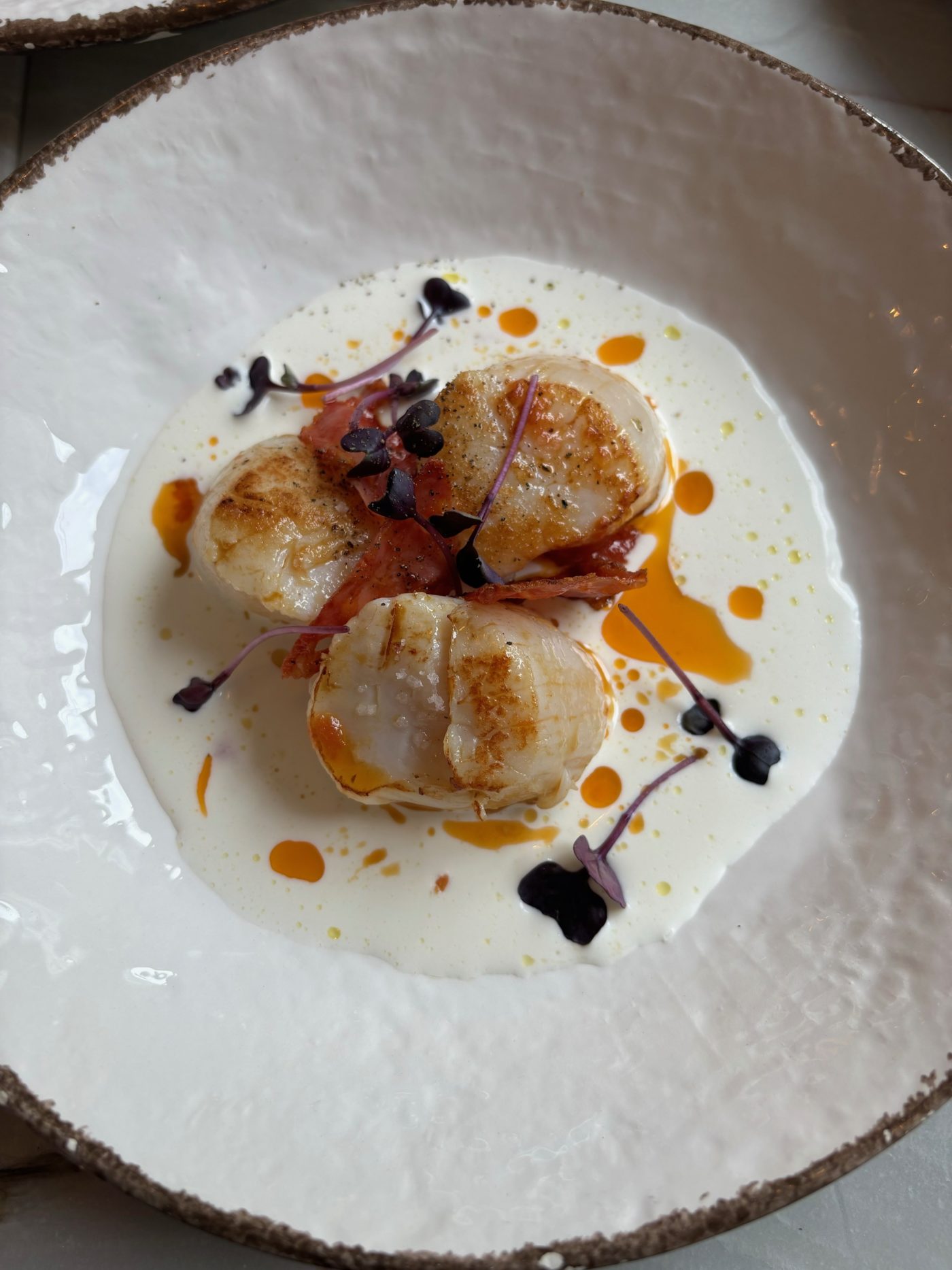 Divinement accueillis par Sarah, nous débutons notre dégustation avec un triptyque de choix. Un élégant carpaccio de poulpe à l’huile citronnée jeunes pousses et Cédrat nous ouvre l’appétit. Le second antipasti est tout aussi réjouissant. Des fines tranches de noix de veau, mayonnaise au thon et câpres offrent une vision terre-mer des plus intéressantes. Pourquoi pas tester, se dit-on, les noix de Saint Jacques crème de Burrata et Spianata piquante. Sarah nous a suggéré, pour l’accord mets&vins un ravissant vin du Frioul équilibré et aux notes de fleurs ainsi qu’un beau nectar du Piémont. Ces deux « pépites » italiennes, servies avec le sourire, font frémir les papilles. Quand arrive l’étape de « Pasta e Risotti », notre choix est vite vu. Ce sera dans un premier temps, les incontournables Paccheri aux langoustines qui sont, rappelons-le, traditionnellement originaires de Naples.