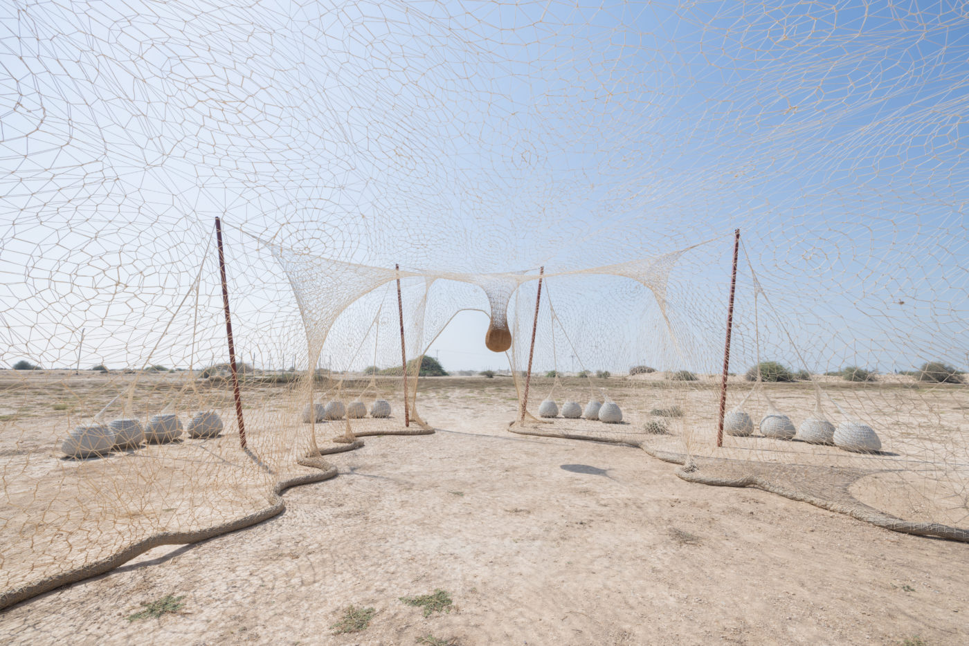 La force de ce projet ? Toutes ces formes, à la fois naturelles et artificielles, sont profondément liées aux archétypes du paysage et à l’histoire du Qatar. Simone Fattal livre cette explication : «Réalisées en Bretagne en granit bleu, les sculptures sont surtout là pour faire semblant, faire un double regard : Sont-elles des pyramides d’autrefois ? Sont-elles des tentes fixées ici depuis longtemps ? Elles sont tous les deux. Elles offriront un abri au passant, et parleront à l’imagination, car elles représentent une image composite de ce que nous nous attendons à trouver dans le désert ». Enfin, l’installation immersive de l’artiste brésilien Ernesto Neto, Slug Turtle, TemplEarth (2022 se veut un chant pour la Terre et rend hommage à l’environnement naturel en créant un espace de méditation, de réflexion et de communion entre les visiteurs et l’esprit du désert. Cette structure est composée de 8 cages de but de football dans un anneau octogonal, et accueille en son centre une sculpture de globe terrestre en céramique entourée d’une vaste surface en filet blanc au crochet. En parallèle de ces trois nouvelles installations, les espaces publics du pays seront transformés en une vaste expérience de musée d’art en plein air avec des œuvres soignées Jeff Koons, Ugo Rondinone, KAWS, Yayoi Kusama, Katharina Fritsch, Peter Fischli & David Weiss, Suki Seokyeong Kang, Shilpa Gupta, Shezad Dawood, Shua’a Ali, Faraj Daham, Shouq Al Mana, Monira Al Qadiri et Salman Al Malek… Un vaste programme qui n’est pas sans rappeler que le Qatar est devenu l’un des premiers pays du Golfe à créer un programme complet d’art public contemporain !