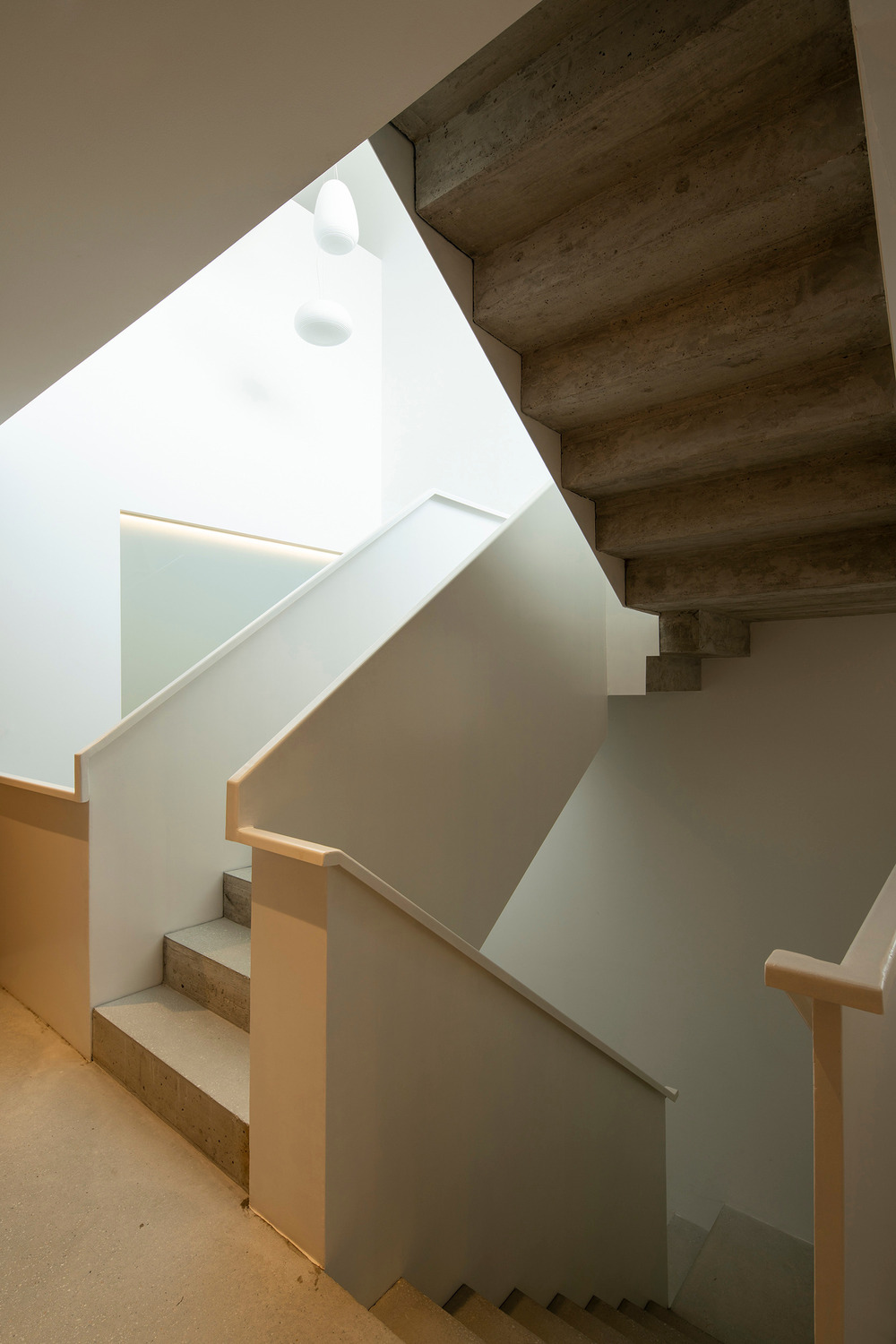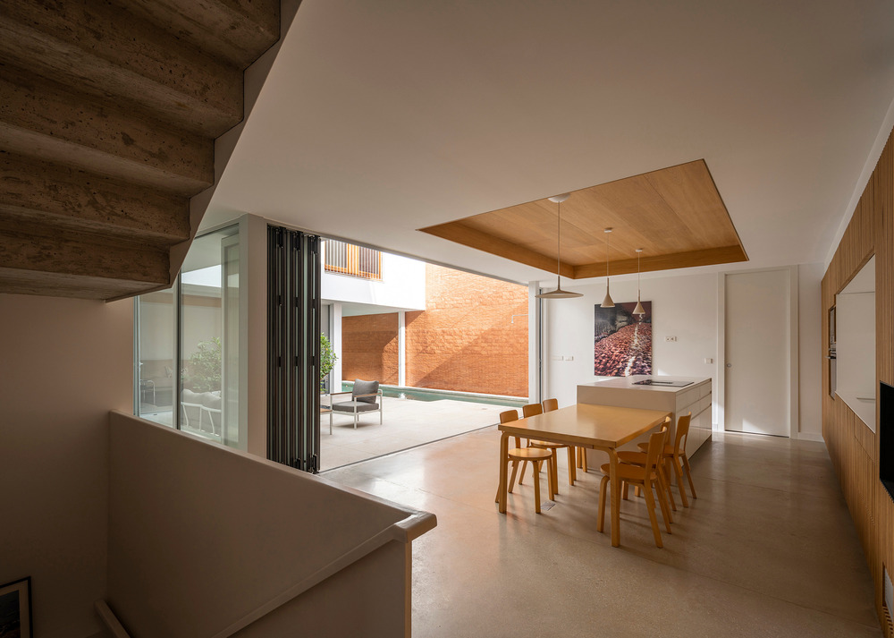 Différentes stratégies seront mises en place pour intégrer la lumière naturelle : patios, escaliers-puits de lumière, double hauteur, etc. Les architectes pensent que tout est. bon pour apprivoiser la lumière et en faire le véritable acteur central du projet. Selon l’orientation, la maison se décomposera pour permettre le passage de la lumière du soleil.
