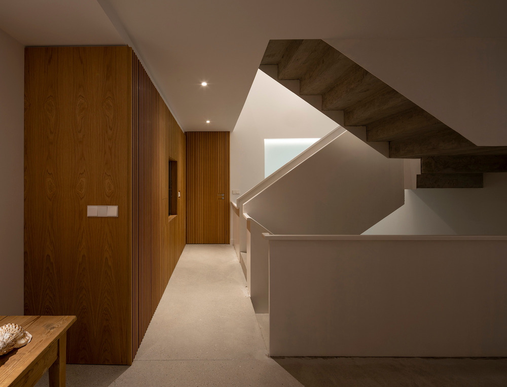 Un terrain en forme de U a été trouvé. Il laisse une maison existante au milieu, en formant deux façades indépendantes faisant face à la même rue. Cette configuration a permis aux architectes de diviser le programme de logements en deux unités bien différenciées : la maison principale d’un côté, et un appartement d’invités de l’autre. La rue sur laquelle s’ouvrent les deux façades n’a que peu d’intérêt, aussi les façades proposées s’intègrent-elles dans l’environnement, sans se démarquer, faisant la part belle à l’intérieur.