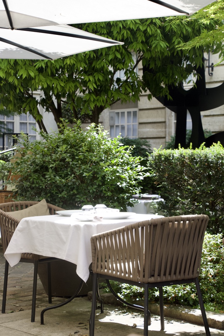Dans sa cour préservée des dernières vagues de chaleur, l’établissement, écrin de verdure ombragé, abrite une table étoilée, Anne, baptisée ainsi en hommage à la célèbre reine de France. En effet, Anne d’Autriche occupait autrefois cette demeure, faisant face au Pavillon du Roi.