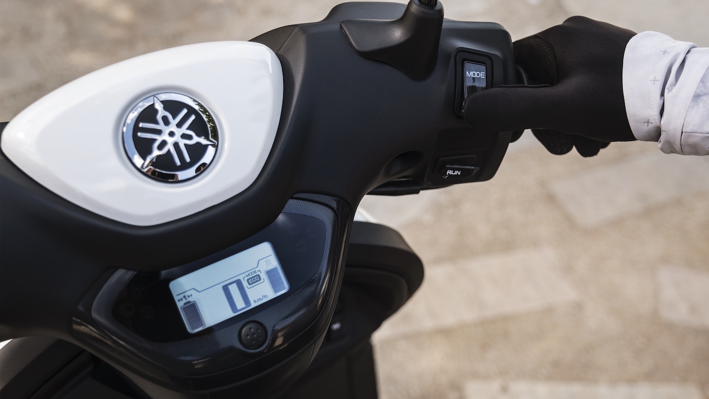 L’autonomie annoncée par Yamaha est de 37 km, mais doublée avec la seconde batterie via l’option facturée 800 euros. La batterie lithium-ion de 50,4V/19,2Ah (développée et produite en interne par Yamaha) est amovible et se recharge à 100% en 8 heures. À noter que si l’on rajoute une seconde batterie sous la selle, il n’y a plus de place pour y loger un casque.