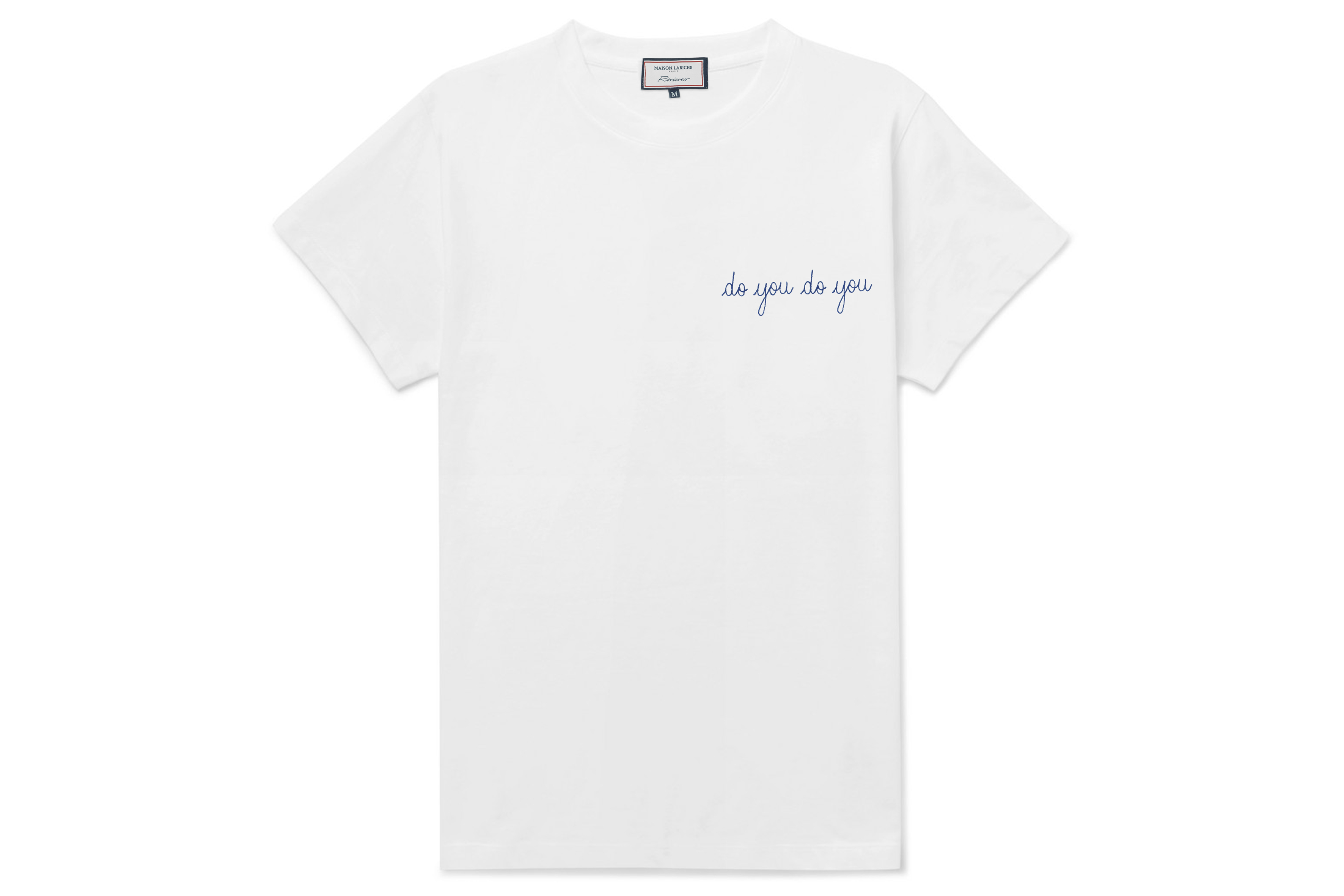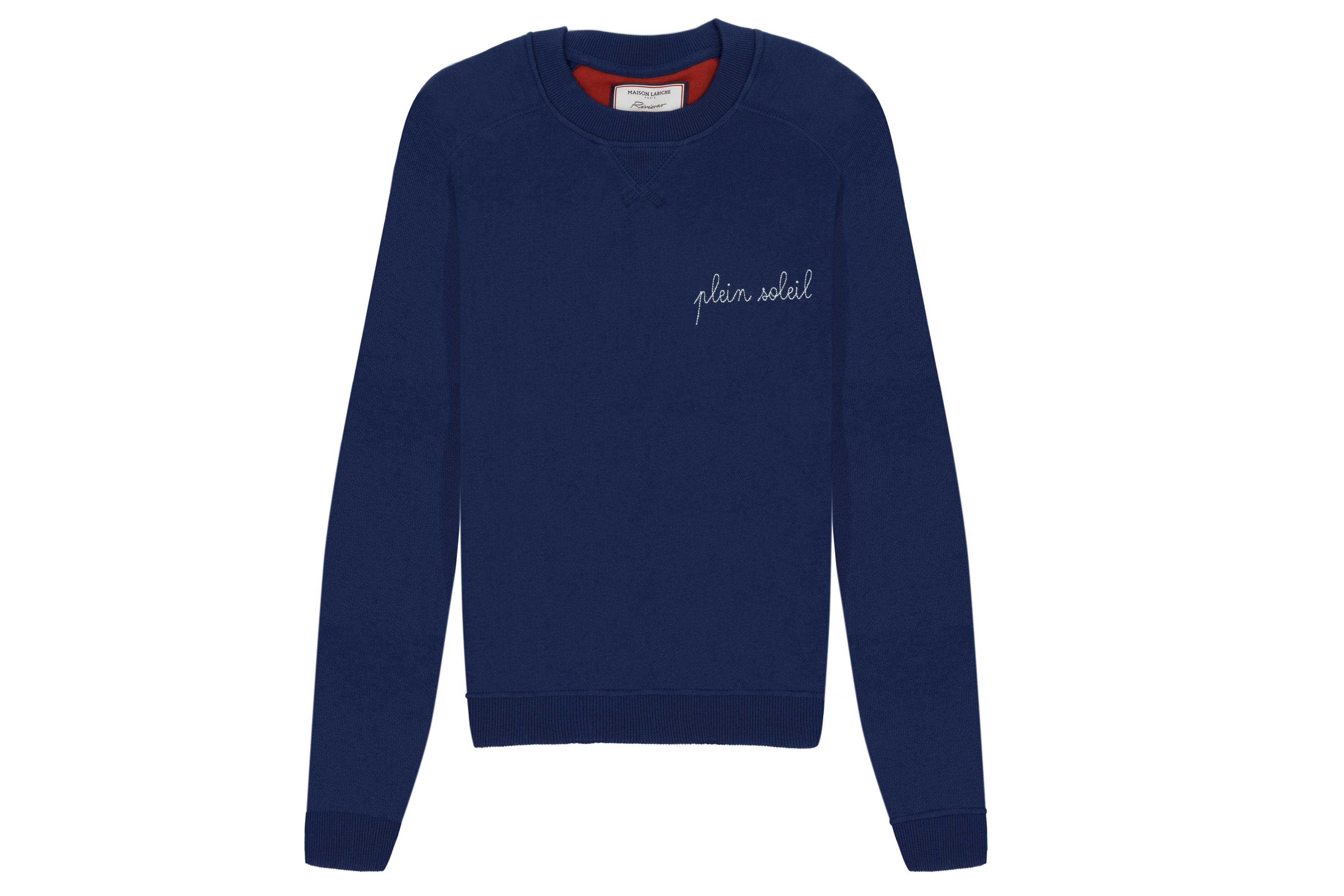 Pour un outfit branché aux influences marines, associez les mocassins aux autres pièces de la collection : un sweat-shirt bleu marine et un t-shirt blanc rehaussés par les broderies Maison Labiche !
