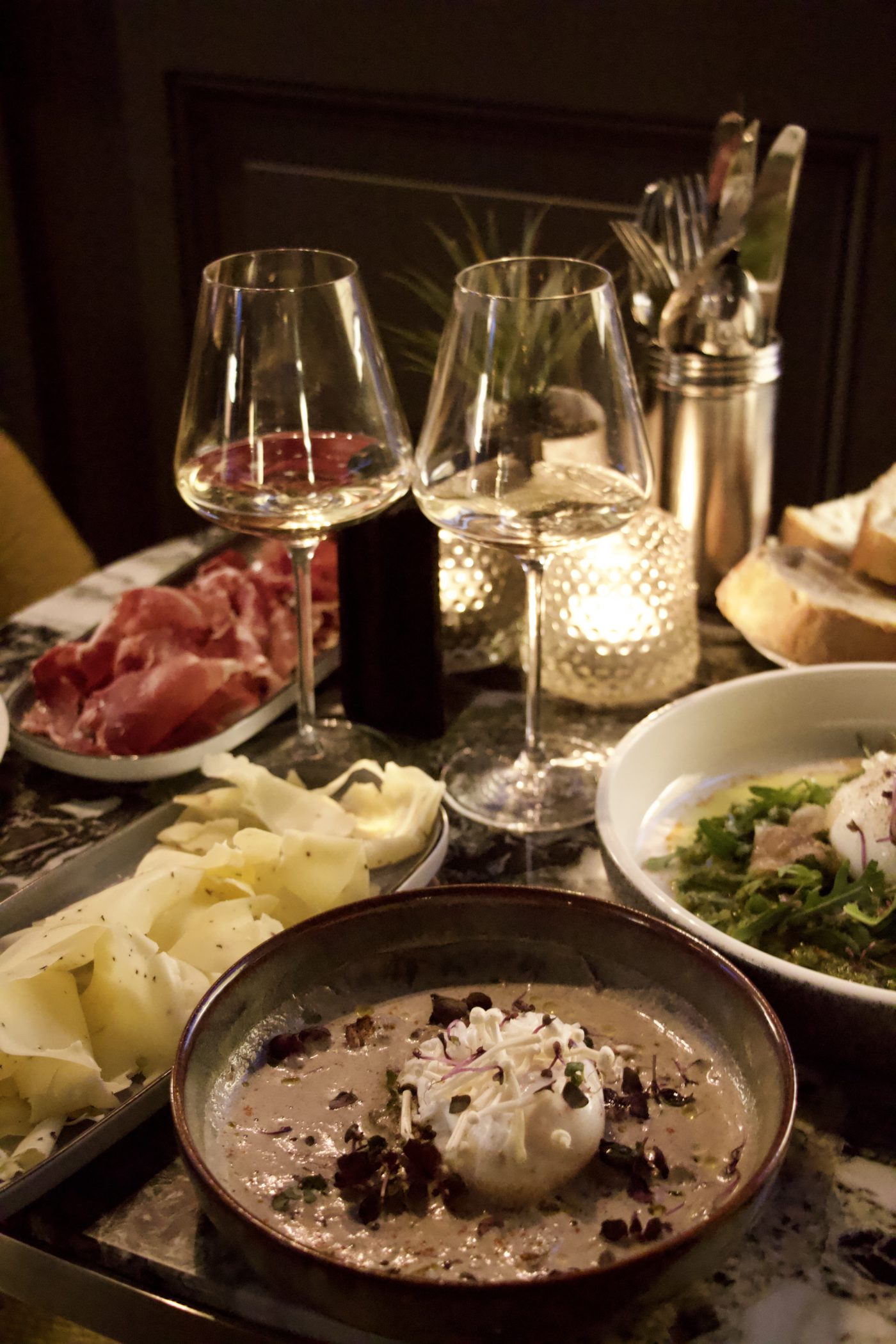 Certaines proviennent de la cave de jeunes pousses surdouées qui profitent de l’émergence du vin nature, tel qu’Antoine Lienhardt et son Pinot Noir dénué de ses habituelles traces de bois. Exquis travail du fruit qui accompagne aisément un morceau de gouda finement haché à la truffe noire ainsi qu’une burrata crémeuse ou un jambon ibérique, qui se traduiraient tout autant par une « ribambelle de produits frais et recherchés pour leur goût, leur proximité ou leur originalité ». Le tout, fait maison, cuisiné dans l’instant à des fins respectueuses de la culture « locavore » qui se fait si bien aujourd’hui.