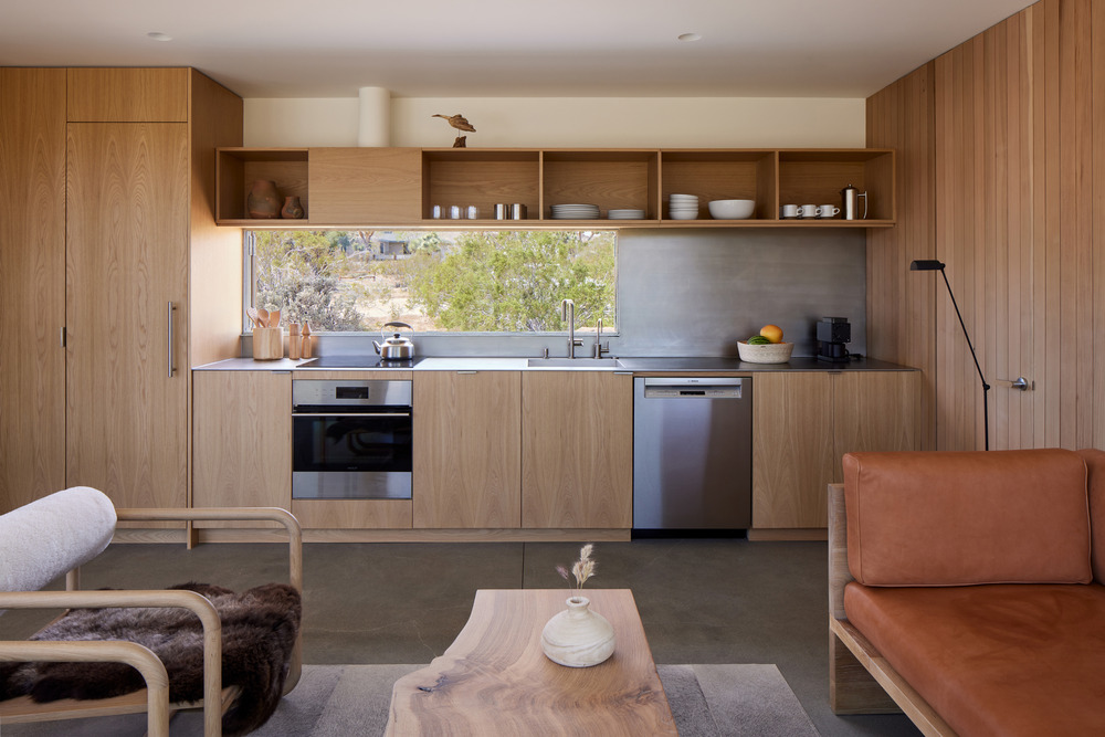 « Nous avons également choisi des matériaux très simples et nécessitant peu d’entretien, notamment le béton, le cèdre et le verre, qui vieilliront naturellement dans l’environnement », explique Gerscovich. « La maison a toujours l’air neuve, mais nous nous attendons à ce qu’elle vieillisse naturellement et grisonne d’une belle manière au fil du temps. »