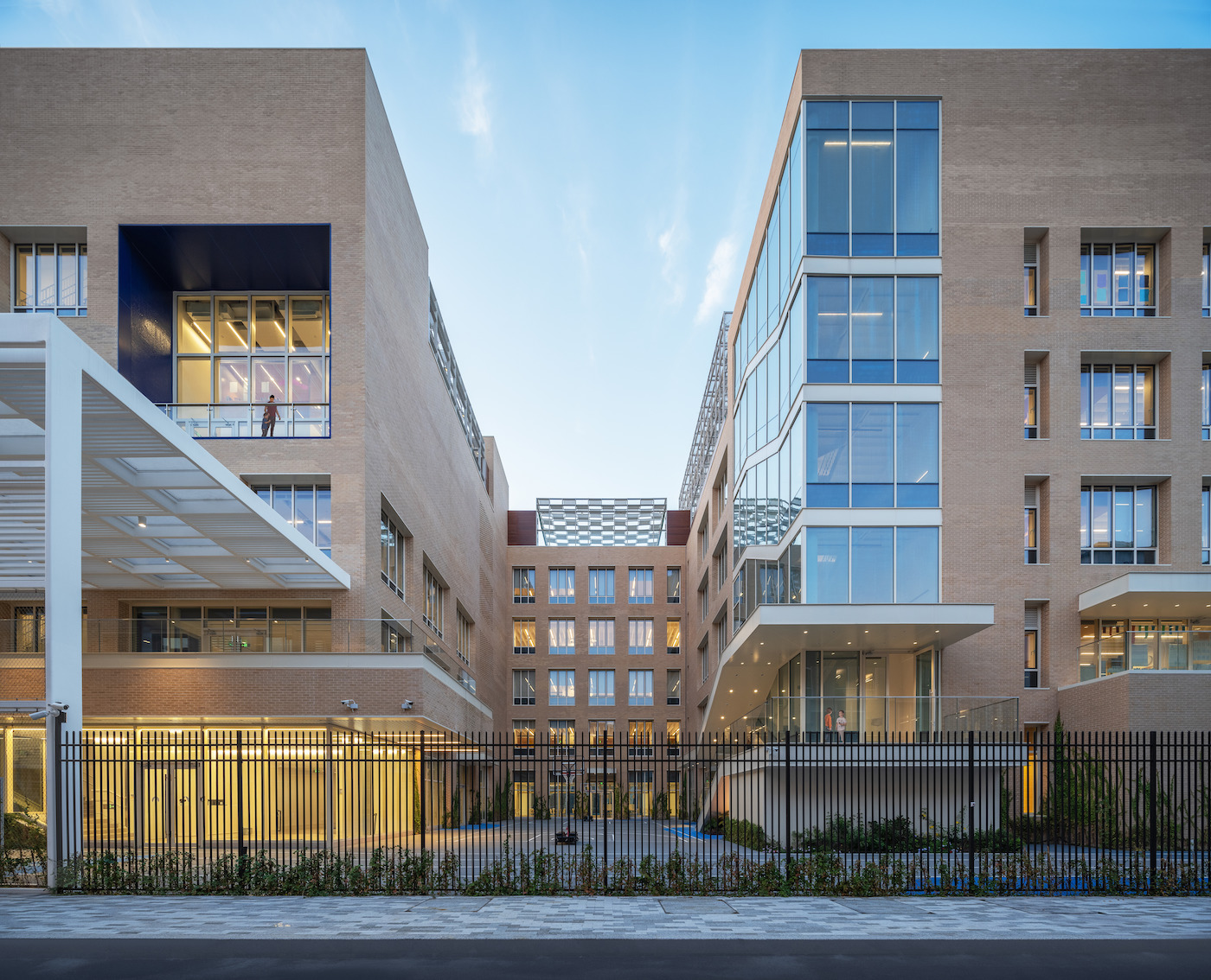 L’école primaire transforme le parking, auparavant au centre du bâtiment d’entrepôt en forme de U, en une aire de jeux, ajoutant un nouvel espace de jeu sur le toit du bâtiment pour aider les élèves à développer leur mobilité, ainsi que leurs expériences sociales et spatiales. Encerclant le bâtiment se trouve une nouvelle piste de course.