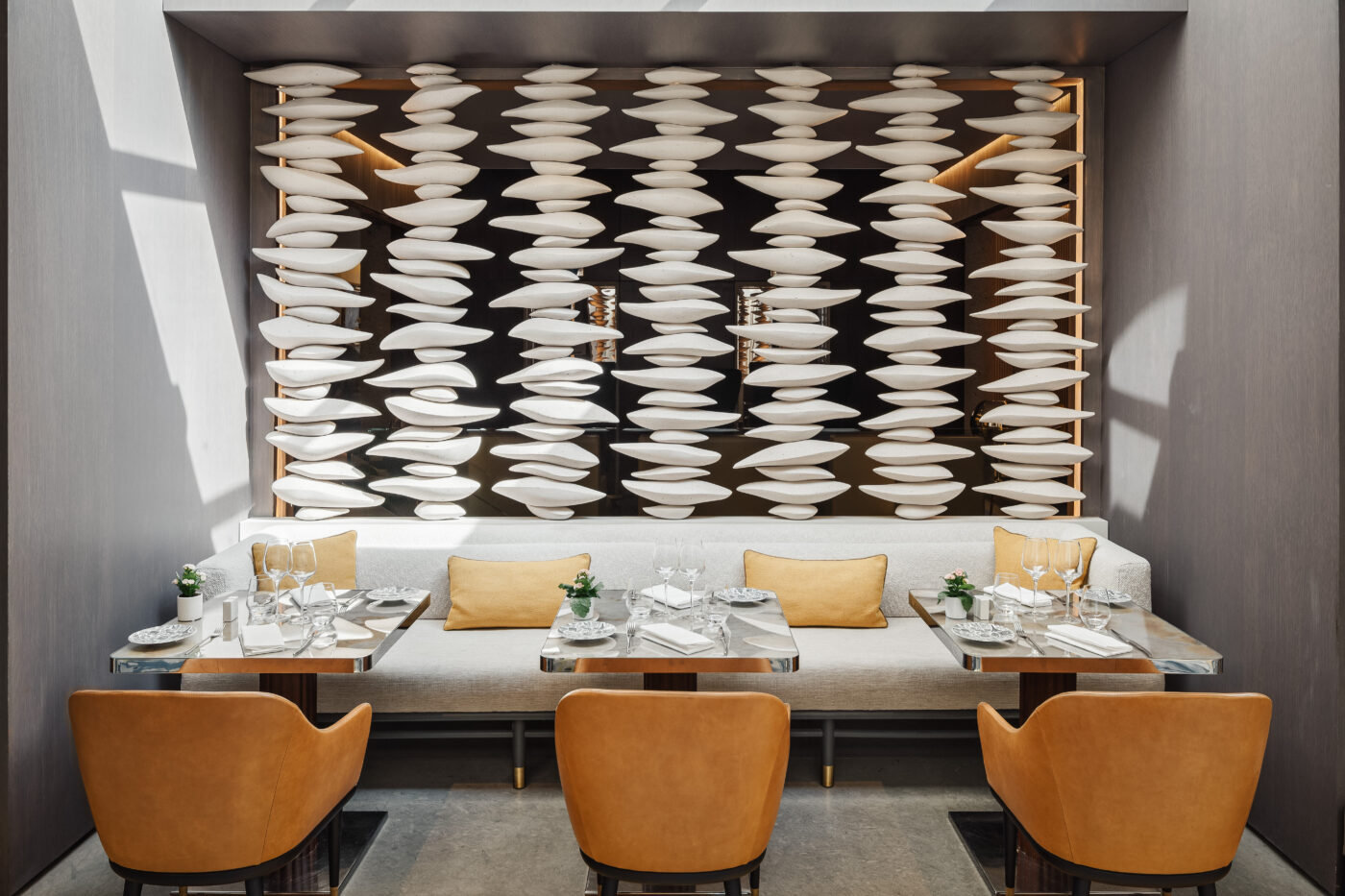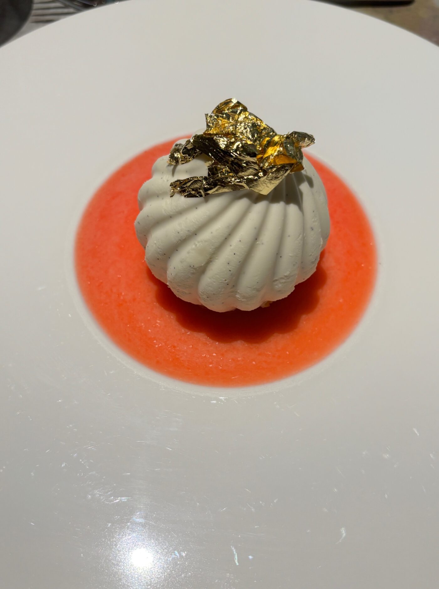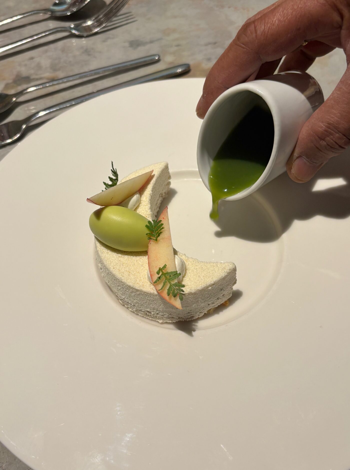 Passé par la case New York, ce chef pré trentenaire affiche un beau pedigree avec notamment un passage par le trois étoiles Per Se de Thomas Keller. Il y forgera sa vision cosmopolite d’une cuisine pleine de finesse et d’audace américaine. Toujours dans le monde très fermé des étoilés, le jeune homme fera ses preuves au sein de l’Orangerie du George V à Paris aux cotés du grand Alain Taudon. Mais là, où l’on a appris le mieux à le connaître reste certainement sur le répertoire italien du Mori Venice Bar où il régalera ses clients avec des plats ciselés et sans fausse. Direction les Champs-Elysées dans une adresse confidentielle qui fut l’Ancienne résidence de Henri-Léopold Charles, marquis de Sers. C’est dans cet hôtel particulier transformé en luxueux hôtel 5 étoiles (du groupe familial B Signature Hotels & Resorts) dont la déco a été réinterprété avec justesse par l’architecte d’intérieur Pascal Allaman et les propriétaires Anne et Agathe Jousse, que se déroulera notre dégustation. On évoluera sur une partition courte. C’est excitant car sur un régime à la fois vif et exigent. Nous sommes accueillis de manière affable par le sympathique Directeur Rafael Da Costa (passé par le Georges V et Le Pré Catelan) ainsi que par le maître d’hôtel Etienne Pinsel (qui s’est distingué au restaurant Les Olivades de Bruno Deligne).