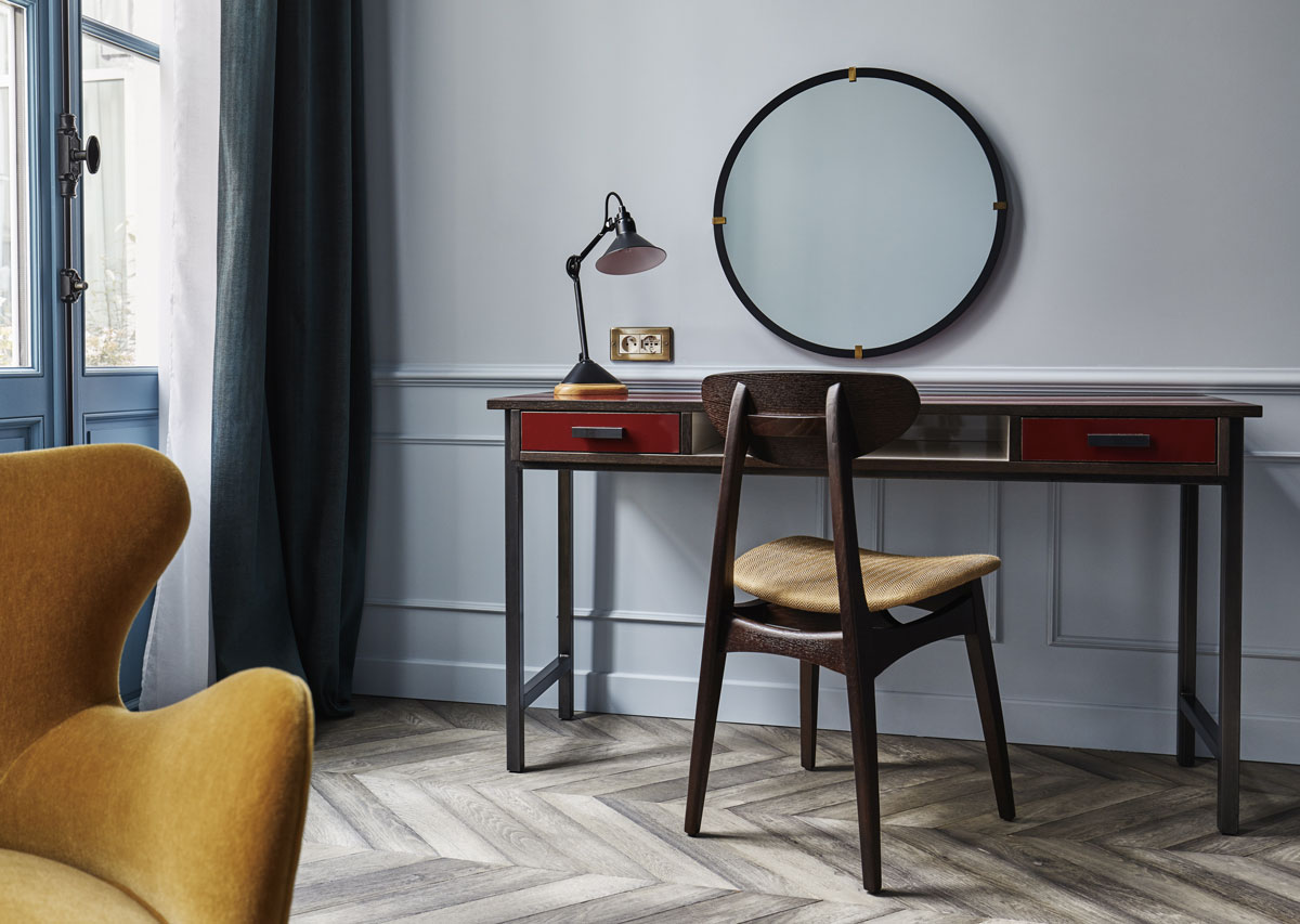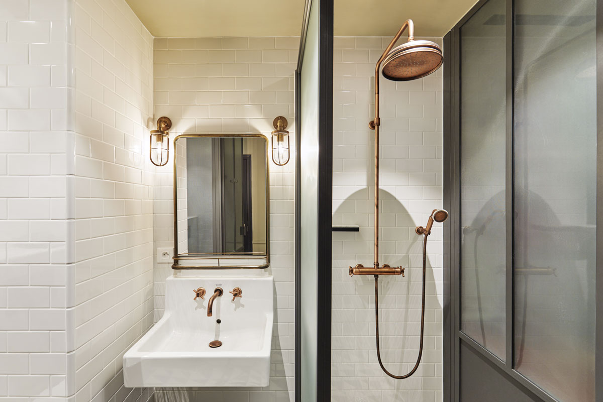 Conçu en collaboration avec les architectes d’intérieur, Humbert & Poyet, le partenaire de longue date Soho House et l’équipe créative d’Ennismore, qui a supervisée l’ensemble du projet de design d’intérieur, The Hoxton Paris compte 171 chambres. S’harmonisant avec les espaces historiques de l’hôtel particulier, les chambres se dispatchent en quatre catégories, de la plus petite, la Shoebox, à la plus grande, la Biggy, en passant par la Cosy et la Roomy dont certaines bénéficient d’un accès privilégié sur le jardin carré. Paisibles, ouvertes sur cour et décorées dans un mood reflétant l’esprit parisien classique en osmose avec l’atmosphère 50’s des ateliers industriels, les chambres s’inscrivent dans la vitalité du Sentier. Les salles de bains ont été réalisées telles des objets fonctionnels, servant aussi de dressing et de bureau à l’extérieur en twistant matériaux typiques des années 50 comme le formica avec quelques références à des designers comme Jean Prouvé ou Mathieu Matégo.