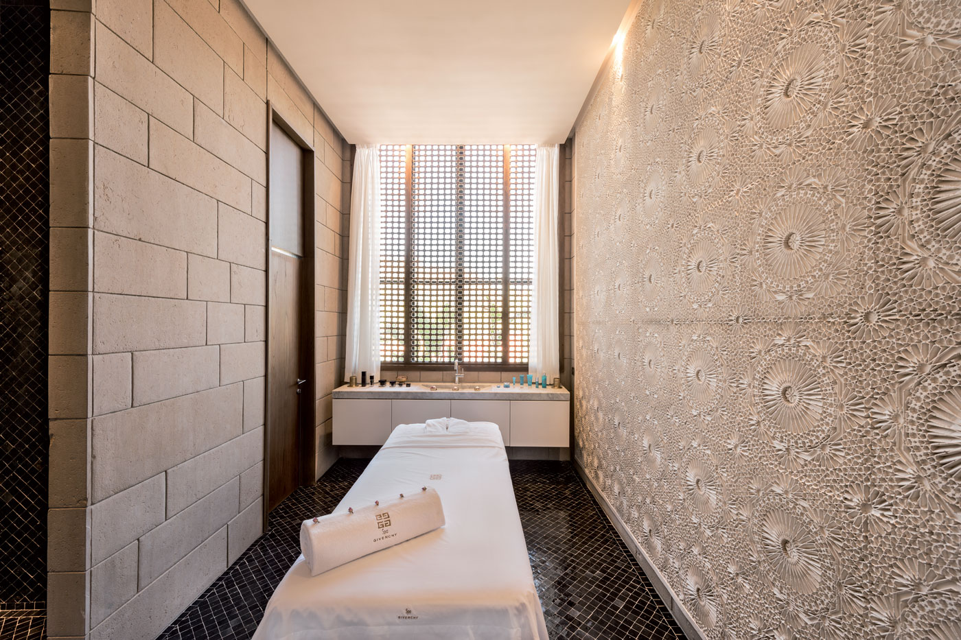 L’architecte français de renom, Christophe Pillet, a conçu l’hôtel Sahrai en apportant une touche de design contemporain à un savoir-faire traditionnel oriental. Entre tons épurés et matériaux naturels comme le marbre, le verre, la pierre taza ou encore la terre cuite, il s’est inspiré des riads, pour créer une ambiance authentique. Incarnant la sobriété et l’élégance d’un palais oriental, cet hôtel est composé de 50 chambres, éditées par Living Divani et par l’architecte Piero Lissoni, qui offrent une vue harmonieuse sur la médina ou sur les jardins. Le Spa Givenchy, lui, vous propose différents soins à partir d’huiles essentielles locales, dans lequel le soleil filtré par de grands moucharabiehs vous plonge dans un instant de douceur et de plénitude.