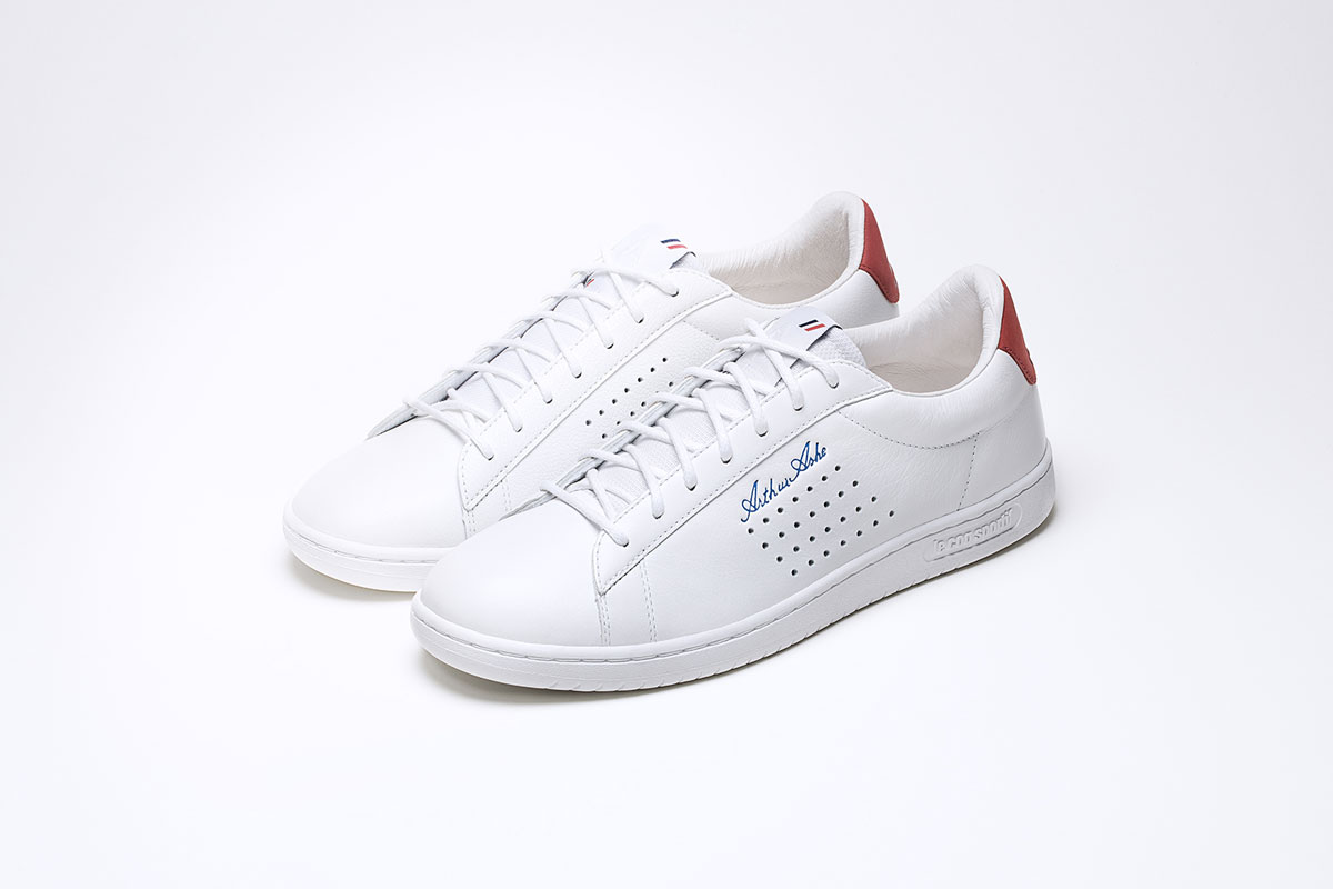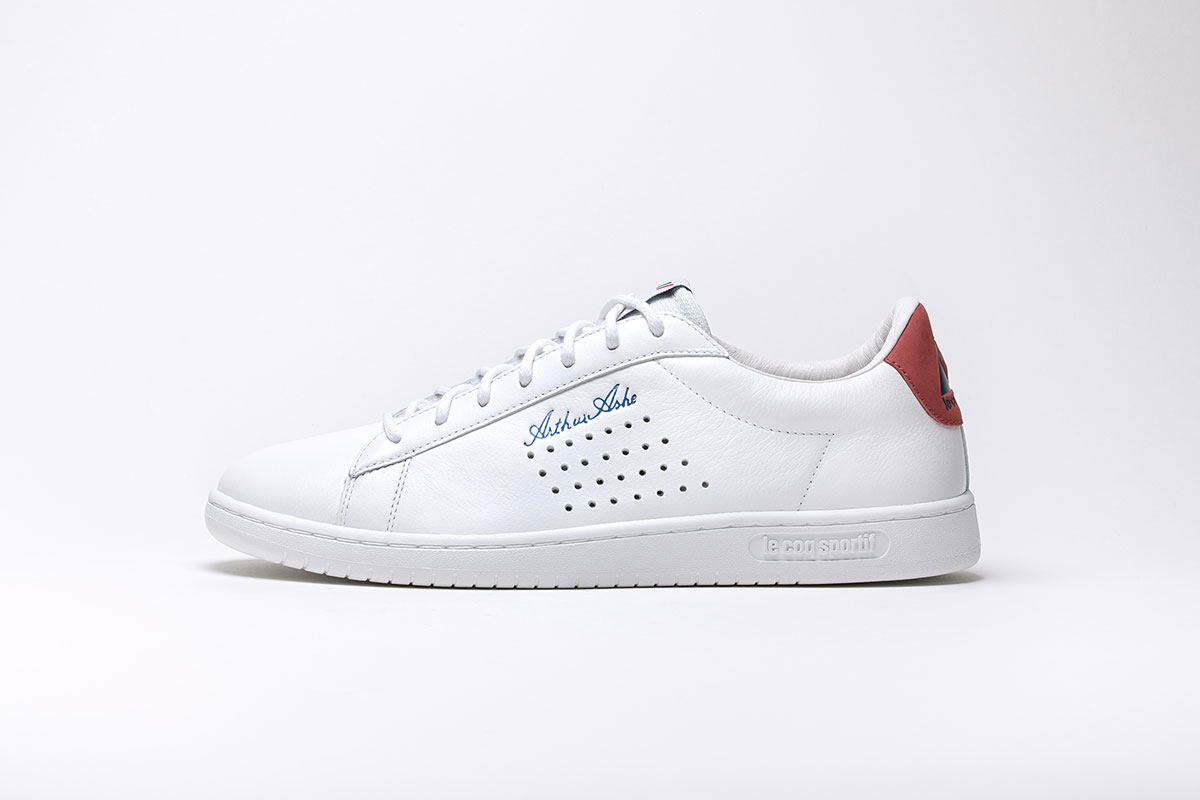 D’après une nouvelle histoire autour de sa patrie, la marque propose un alliage de bleu-blanc-rouge dans un beau mélange de matières premium. On retrouve la Turbostyle, modèle iconique du coq sportif, ainsi que la Omega qui mixent toutes deux les trois couleurs avec une dominance de bleu qui leur offre un aspect plus moderne. L’emblématique Arthur Asche, elle, est conçue dans un cuir d’un blanc pur, sertie d’une touche de nubuck rouge sur le haut du talon pour souligner son effet graphique.