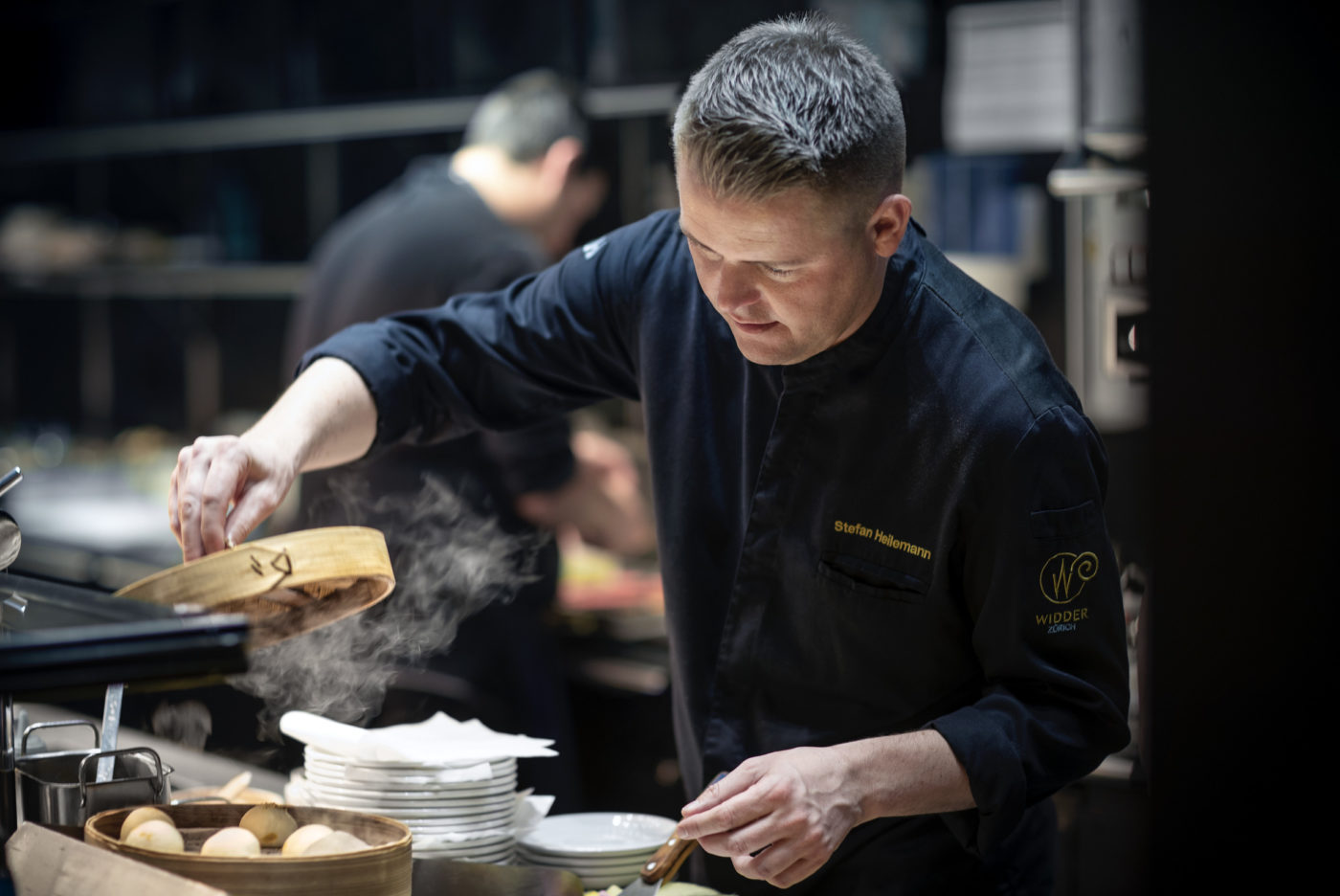 On passe ensuite à la découverte des 9 suites (Courtyard Suite&Spa, Family Suite, Historic Suite où nous séjournerons, Design Suite Design avec sa terrasse privative et sa vue plongeante sur la rue marchande Rennweg) qui nous charment par les possibilités de salon séparé ou d’annexes avec deux lits simples. Le style baroque du mobilier apporte, de temps en temps, une touche « rock » répondant à la philosophie « Stay Unique » du Widder. On adore celle qui offre, depuis sa grande terrasse, une vue sur le Lidenhof, mais aussi celle avec sa baignoire surdimensionnée sans oublier la « star des stars » dotée d’une immense terrasse de 80 m2. On s’oriente alors vers le Widder Bar situé derrière la Münzplatz, bar culte et hotspot de la vie nocturne, tout comme le Widder Garage idéal sur l’afterwork. Mais, ce qui reste notre priorité absolue reste l’incomparable Widder Restaurant notés 18 points au Gault&Millau sous la houlette de son chef 2 étoiles Stefan Heilemann. On a prévu de vivre cette étape culinaire exceptionnelle et de plonger dans la partition de ce chef virtuose (sévissant avec le génial Chef Pâtissier André Siedl) qui excelle avec des notes exotiques dans le remarquable menu dégustation. A ne pas manquer, l’excursion vinologique du brillant chef sommelier Stefano Petta.