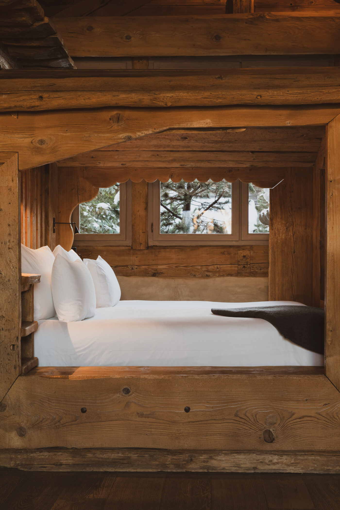 Pas de bar-lounge pompeux où l’on parle fort à l’heure de l’après-ski. Zannier c’est avant tout une philosophie et une histoire entrepreunariale avec le self made man Roger qui a fait fortune dans le textile (IKKS, Bonton, Tartines et Chocolat..) et qui se prolonge aujourd’hui, sous la vision du fils Arnaud, dans l’univers de l’hôtellerie de luxe avec des villas privées en estate et plusieurs établissements remarquables dans le monde (Cambodge, Namibie, Vietnam et en 2026 le fabuleux projet à Bandor avec la famille Ricard). Le PDG de Zannier Hôtels est également investi dans le secteur du vin avec l’exploitation, à Cogolin, du Château Saint-Maur crû classé de Provence et d’une quinta, au Portugal, dans la vallée du Douro. Cet homme d’affaires éclairé, qui assure maintenant la relève, a compris avant les autres, que les voyageurs veulent avant tout retrouver l’essence d’un service de luxe intuitif et respectueux de son environnement. Un luxe dépouillé « low profile » dont raffole toute une nouvelle génération en quête d’hôtels intimistes au cachet incroyable. Le fil conducteur chez Zannier ? L’émotion. Pas surprenant, donc, qu’au sein de cet élégant « boutique-hotel » de Megève, ouvert en 2011, on ressente ce « quelque chose » de si spécial évoquant une hôtellerie nouvelle pour esthètes en quête de minimalisme résumé dans l’expression de « simple mastery » : la recherche de la beauté en chaque chose, à chaque instant, même minime…