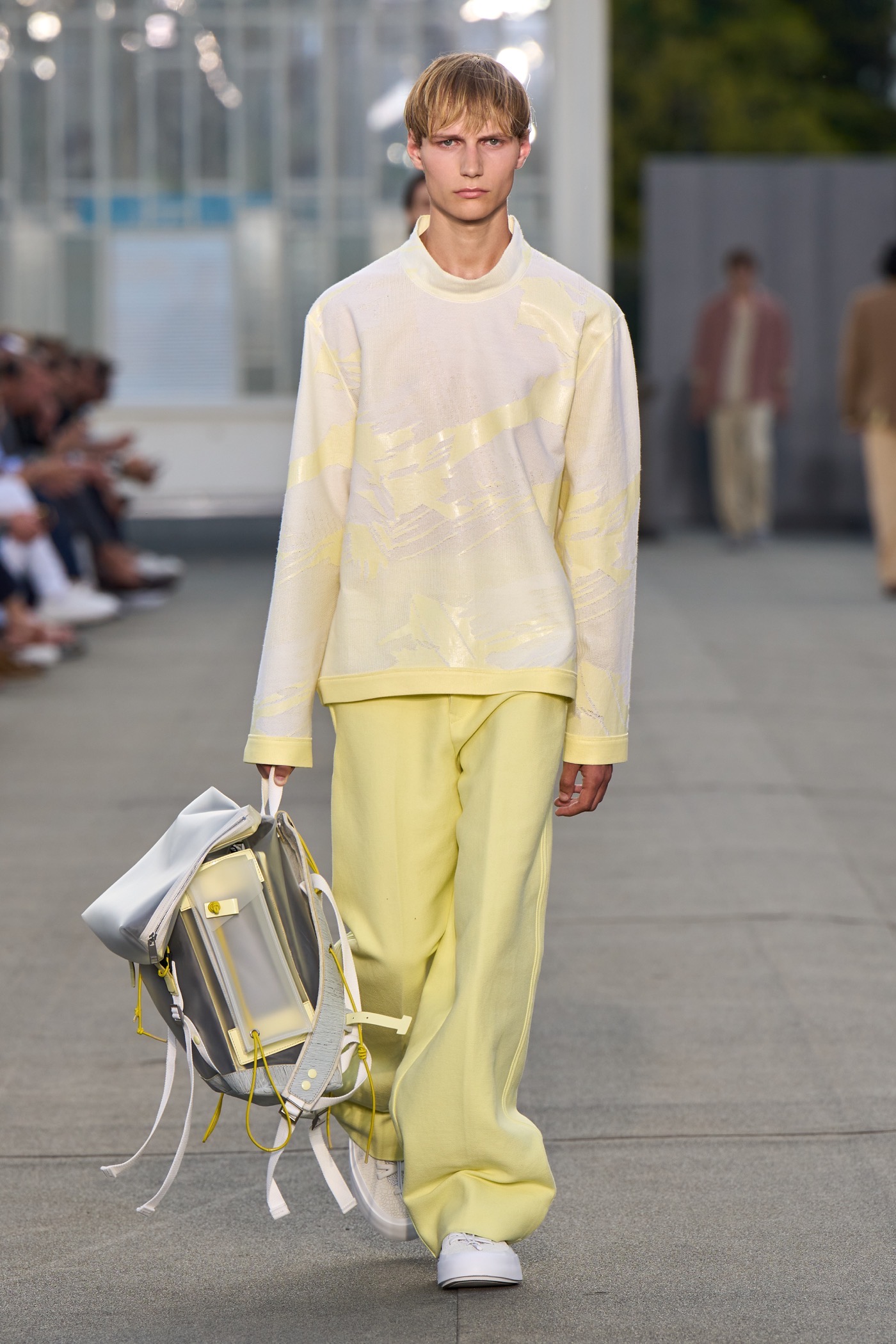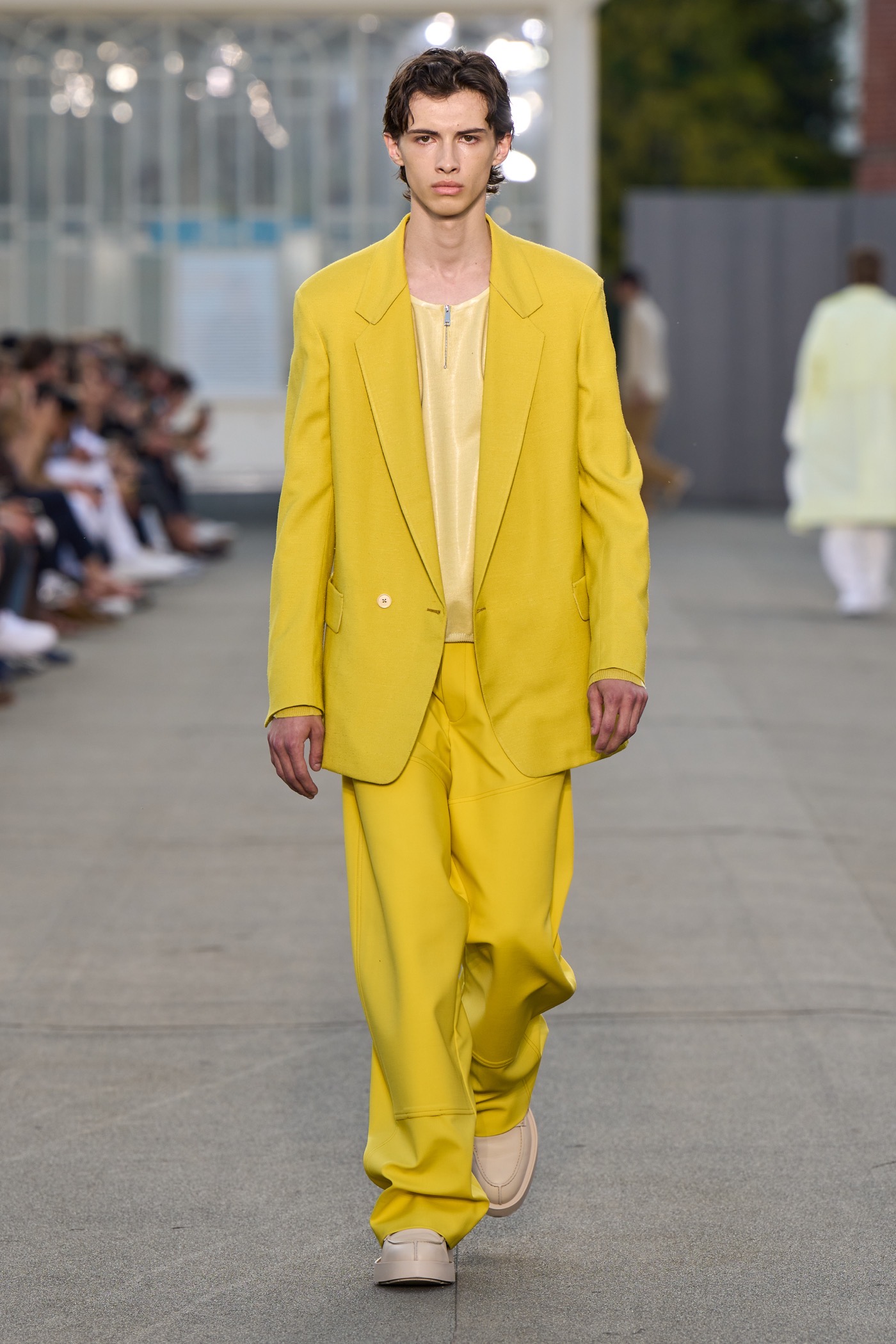 Des looks frais qui mettent de bonne humeur qui incarnent la joie de vivre et son corollaire : un doux sentiment de légèreté et de liberté grâce à la fluidité des pièces de l’ensemble de la collection. Parmi les autres incontournables, le tie-dye, encore lui, ou les imprimés en référence aux collines de Trivero, la ville natale de Zegna.